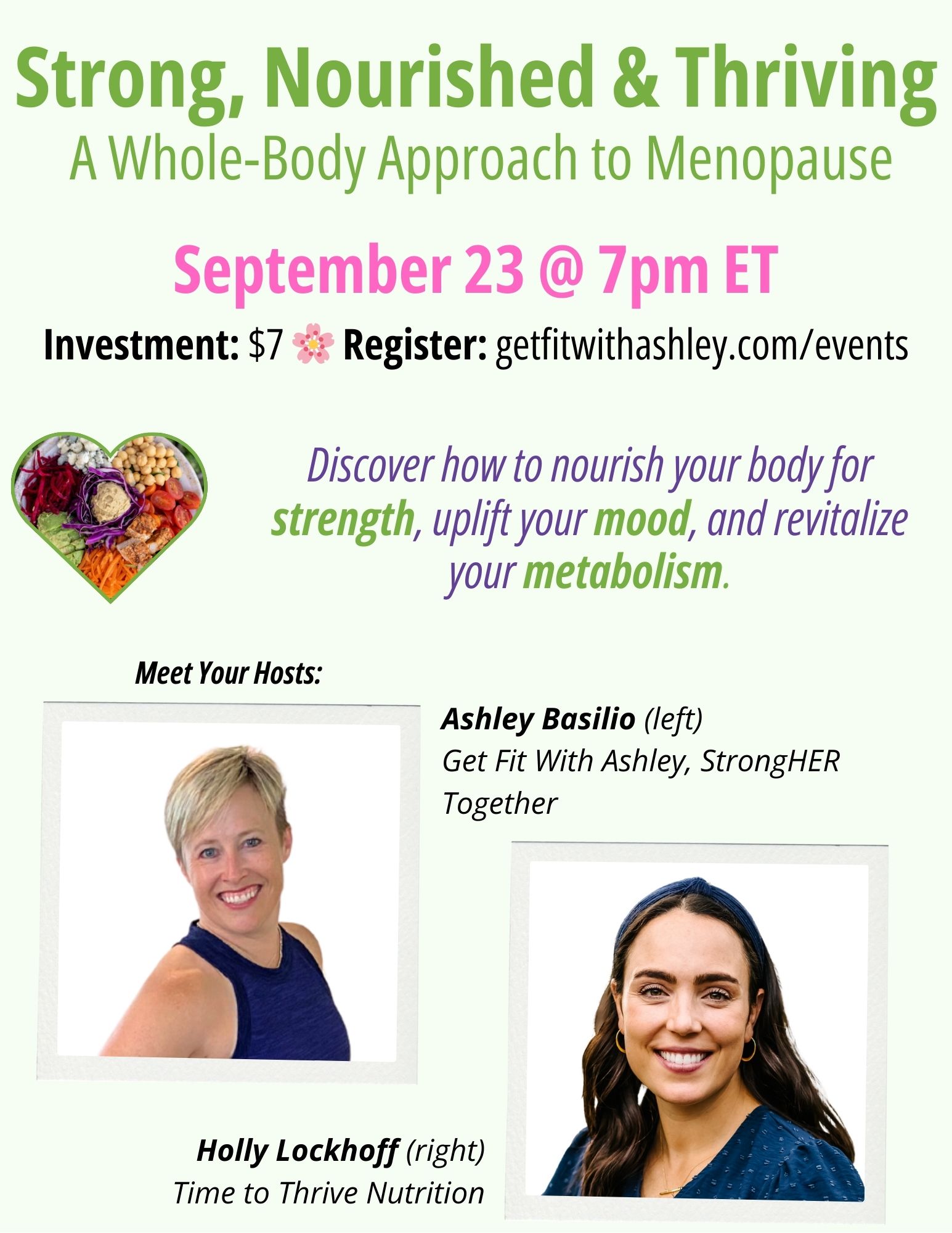 ZoomReady to shift your perspective on midlife? This masterclass with Ashley and special guest, Registered Dietitian Holly Lockhoff, is all about nourishment, not restriction. You'll discover simple, sustainable strategies to feel your best through every stage of menopause. We'll cover: -Fuel for Hormonal Health: Learn what to eat to support your metabolism, mood, and overall…